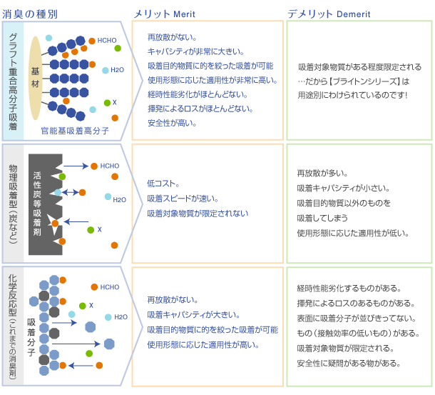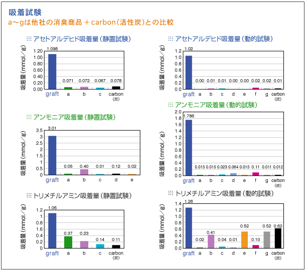 グラフトンは 、 化学反応(中和反応)により対象物質(有害化学物質・悪臭原因物質)を